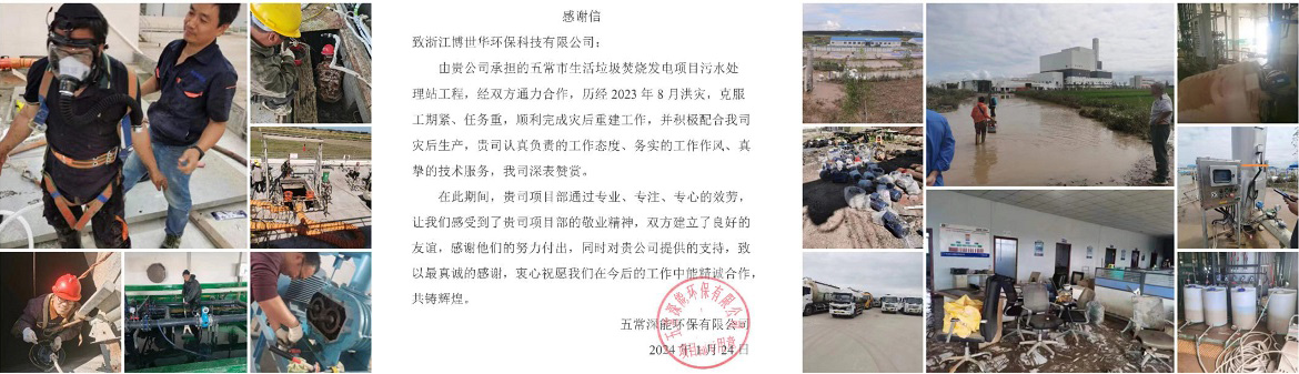 1月24日,公司收到了五常深能環(huán)保有限公司的“感謝信”,對公司承接的五常生活垃圾污水處理站項目及災后重建中的優(yōu)異表現(xiàn)給予了充分的肯定和贊賞,對公司認真負責的工作態(tài)度、務實的工作作風,對項目部專業(yè)、專注、專心的敬業(yè)精神給予了高度評價和真誠謝意。這一份來信,就象冬天里的一把火,點燃了公司2024年的興旺開端。