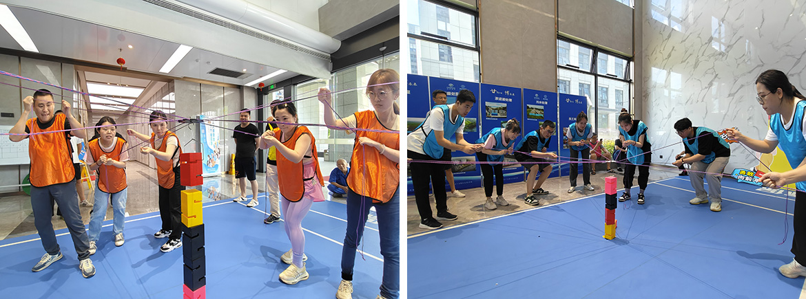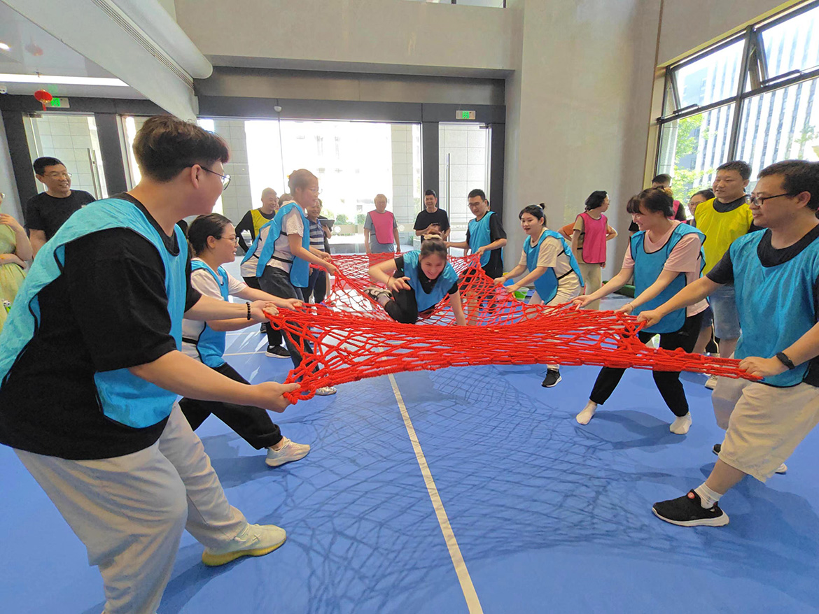 合力搭建延伸出的幾條繩子將大家的勁使在一處,心連在一起。齊心協力是必須,百折不撓是常態。現場瞬息萬變,引發大家陣陣歡呼。
